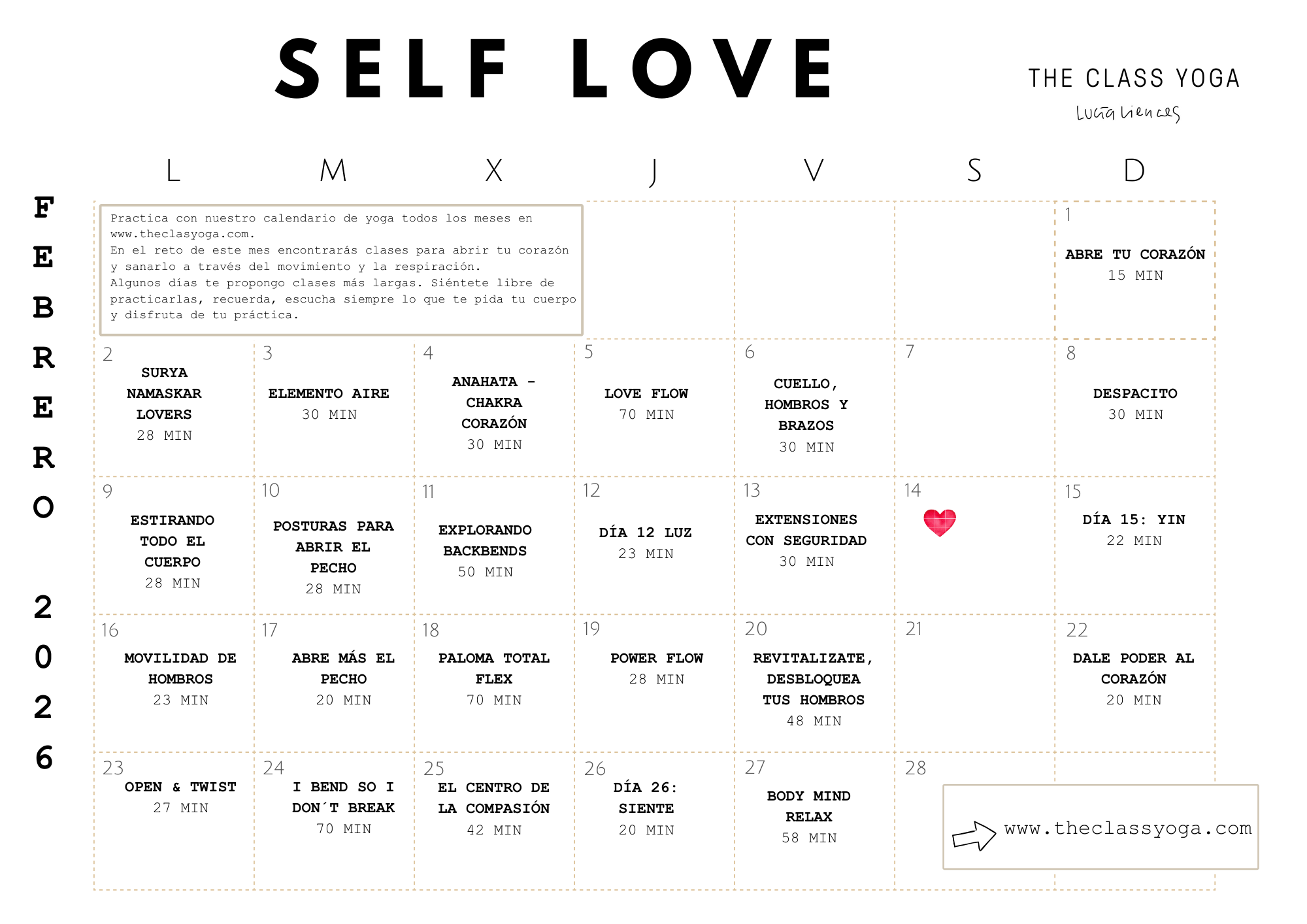 Hola a todos! Listo el calendario Self love! Encantada con las clases y necesarias para apertura del corazón 💓 gracias 🕯️✨