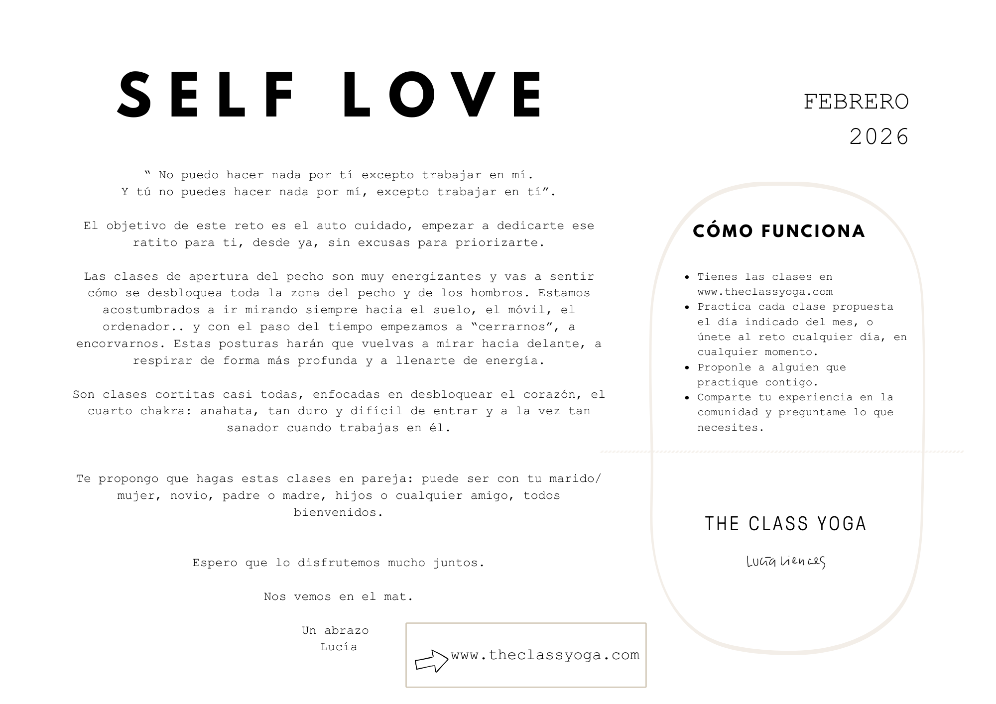 La clase de mañana día 5 "Love flow" es una clase preciosa de apertura del pecho, de 70 minutos y con posturas de nivel intermedio- avanzado.